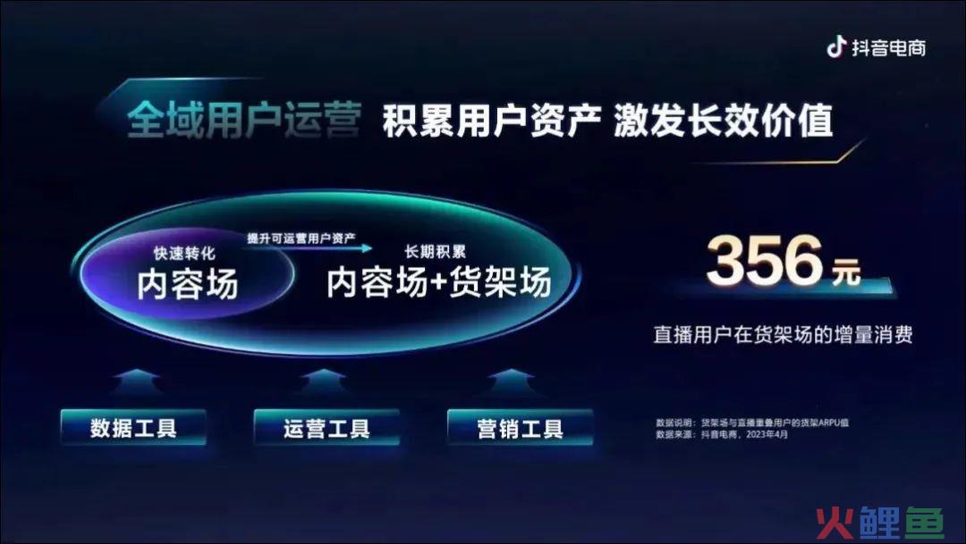最新数据数据显示,今年4月,抖音直播用户在货架场的新增消费提升了356元。