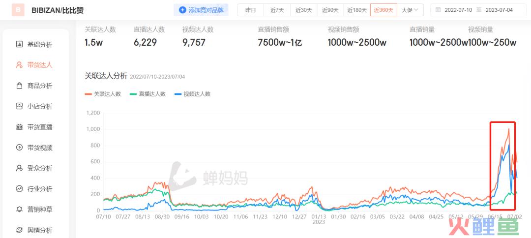 ▲图片来自蝉妈妈-比比赞近一年销售量变化