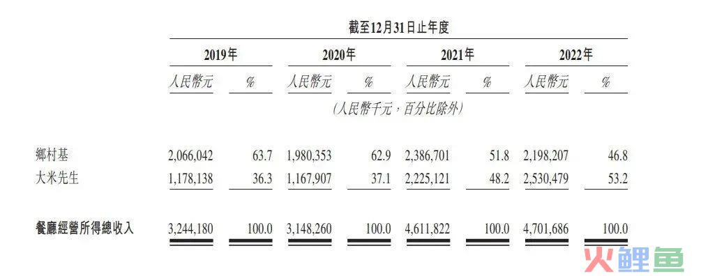 以三次向港交所递表的乡村基为例(旗下有乡村基、大米先生两个餐饮品牌),根据招股书披露的信息,其在2022年营收达47.06亿元,净利润为3083.8万元,净利润率为0.66%。