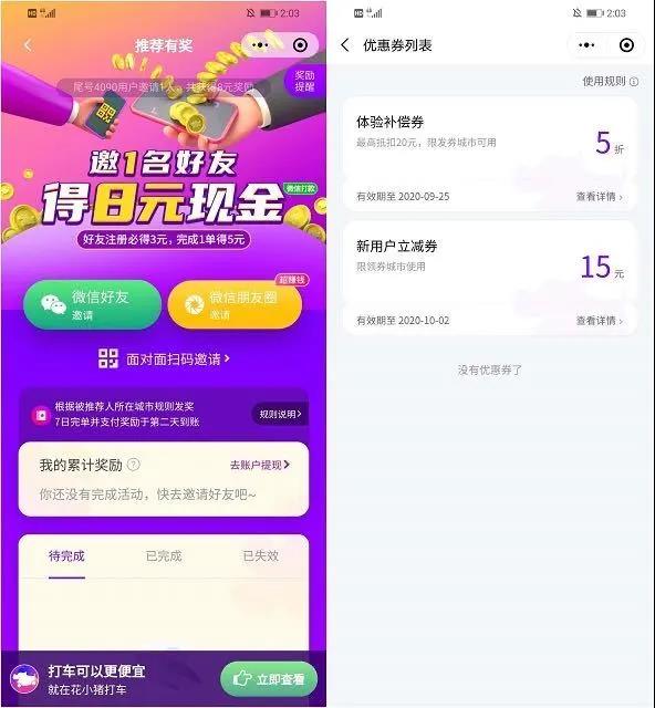 平心而论,花小猪短时间内爆红,靠的并不是滴滴这个靠山,而是将拼多多的“大额补贴+社交裂变”的模式,直接照搬移植到了网约车领域。