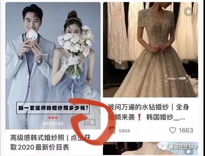 实际的展现效果可以看下图,在搜索结果或者信息流刷到会显示广告或者赞助的字样。