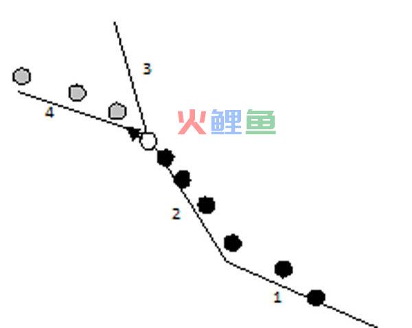 以图2为例,具体的做法是:在灰色点的地方,对地图绑定进行重新判断,由于灰色点轨迹的方向和当前路段行驶方向的角度/距离(或者其他相似度度量)比较小,所以是当前路段的可能性比较大。