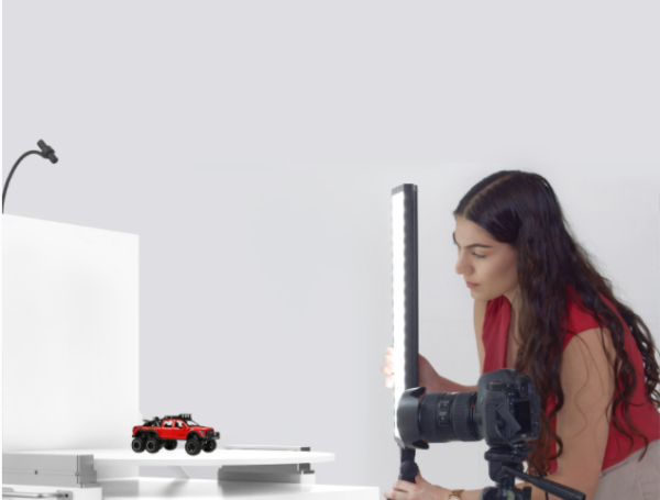 ML40软硬件一体化,一键设置智能灯效模式,即便是非专业摄影人士也能轻松搞定拍摄光影效果。“L”造型的硬件设备上配有4组可实时调光的照明设备,背部和底部配备精细调光照明系统,组合式高质量柔光灯系统,保证5600k拍摄色温,能让拍摄对象色彩得到最真实的表达,画质清晰细腻无需后期二次调色。同时自带的拍摄软件拥有自动化灯光照明控制系统,通过软件,拍摄者可一键设置想要的拍摄光源环境。