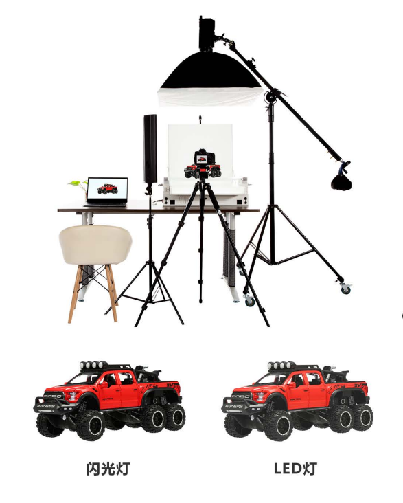 “L”造型,自带转台及十字激光定位器,轻松搞定无影拍摄