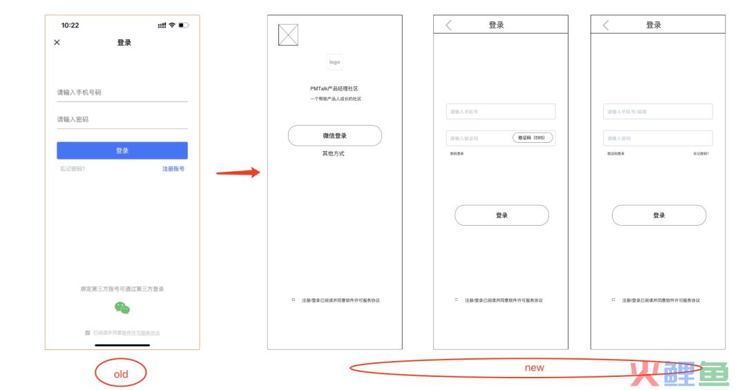 下图是我们在第一个版本、和后续版本下的登录注册页面交互优化。