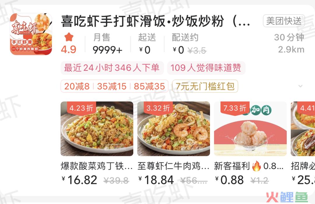 相信大家可能会好奇,炒饭和虾滑都不是什么新品类,炒饭的组合搭配也实在不新颖;那么喜吃虾是凭借什么快速出圈的呢?其实,就一个点,将两大高人气产品进行创意组合,在拓宽客群的同时一并满足客群的多种消费需求。