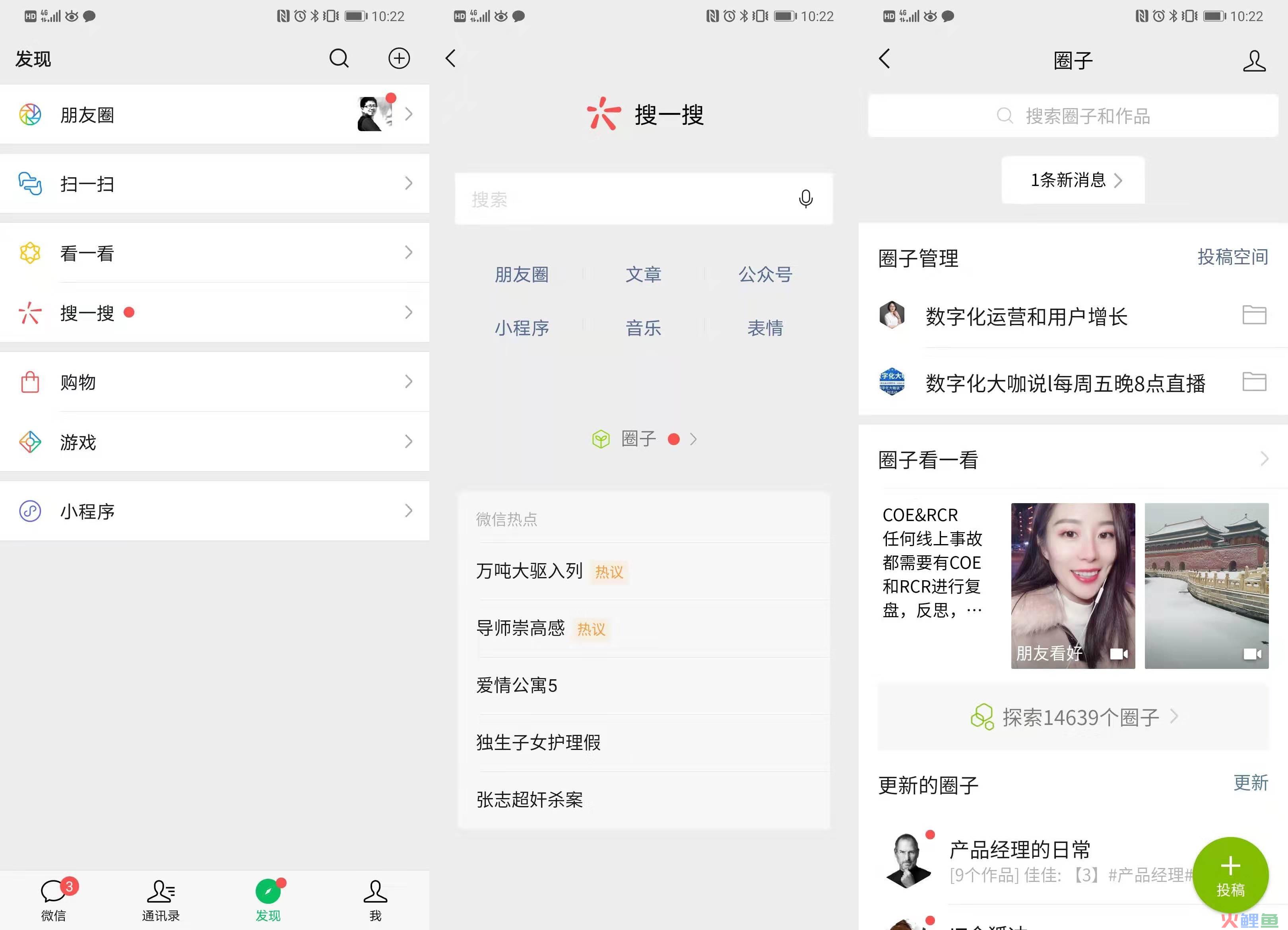 可见目前微信还没有给特别大的流量入口给到微信圈子,但是从最近一个月开始,微信圈子的升级动作频频,最近一直在关注,将关注总结的内容梳理一下。