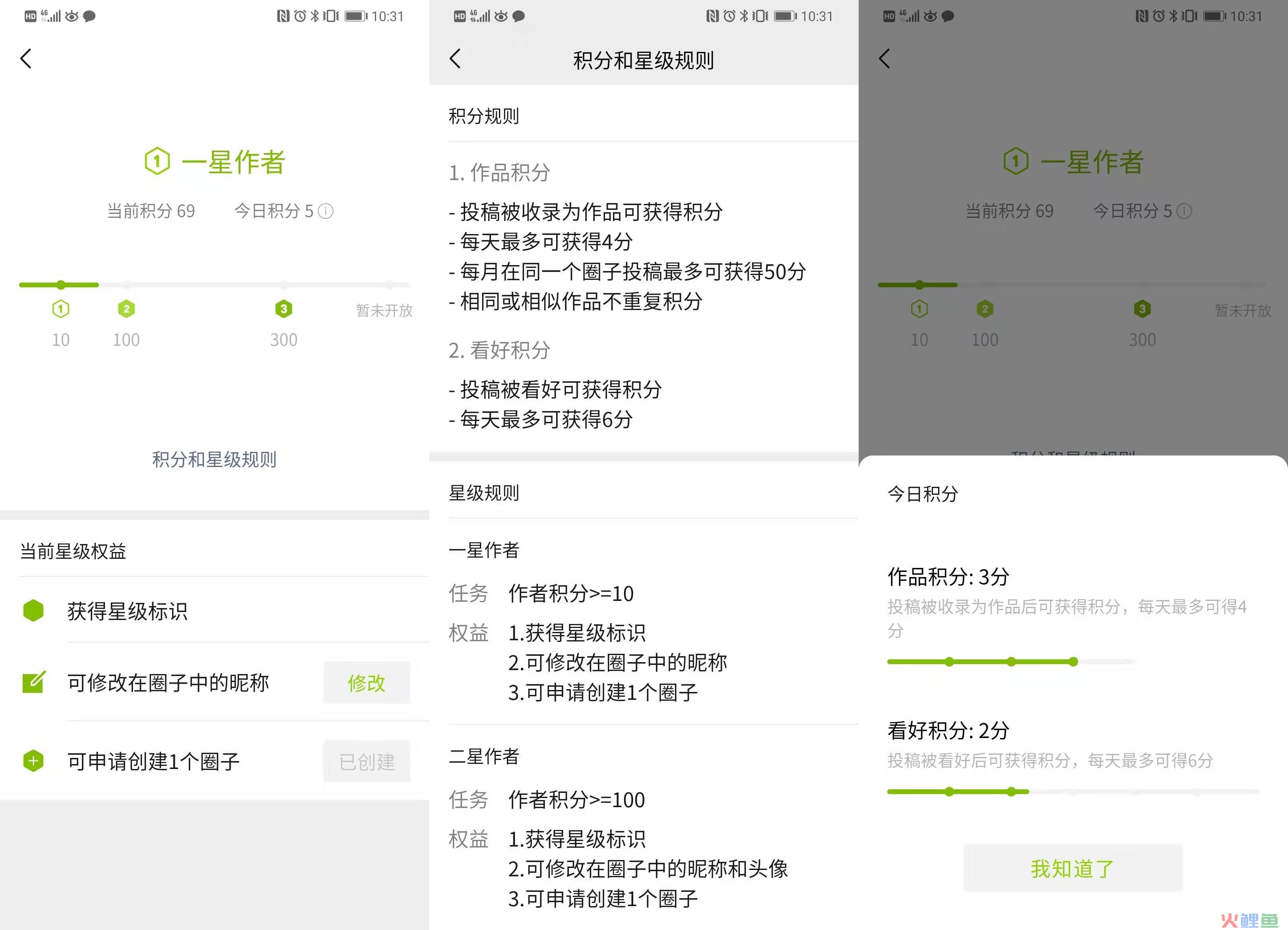 圈子现在有两个等级体系:一个是圈子的成长体系、一个是创作者的成长体系。