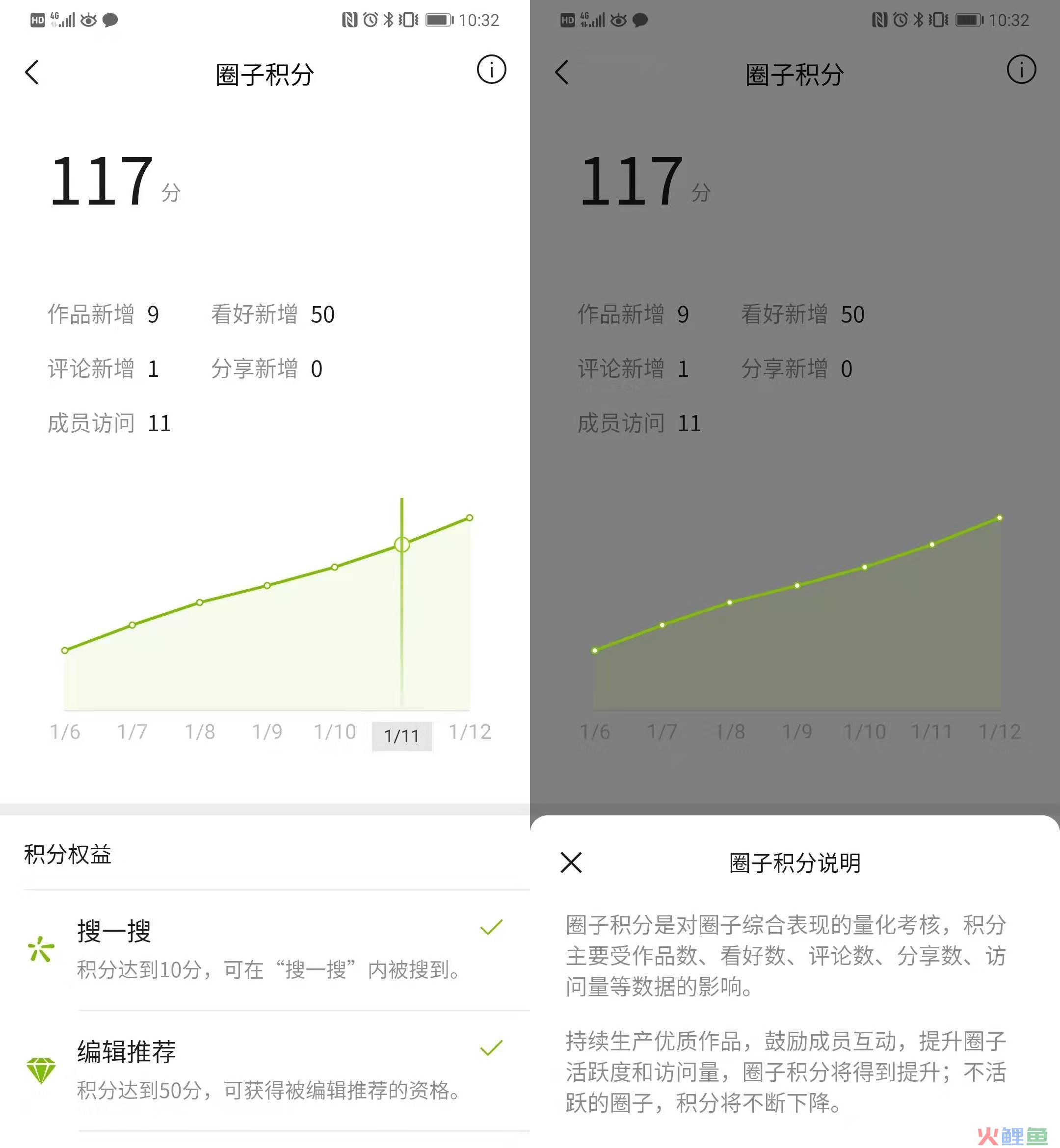 目前最新的规则是:每天发布一条内容被收录即可得1分,每天上限4分;每天发布的内容被其他人看好得1分,每天上限6分;