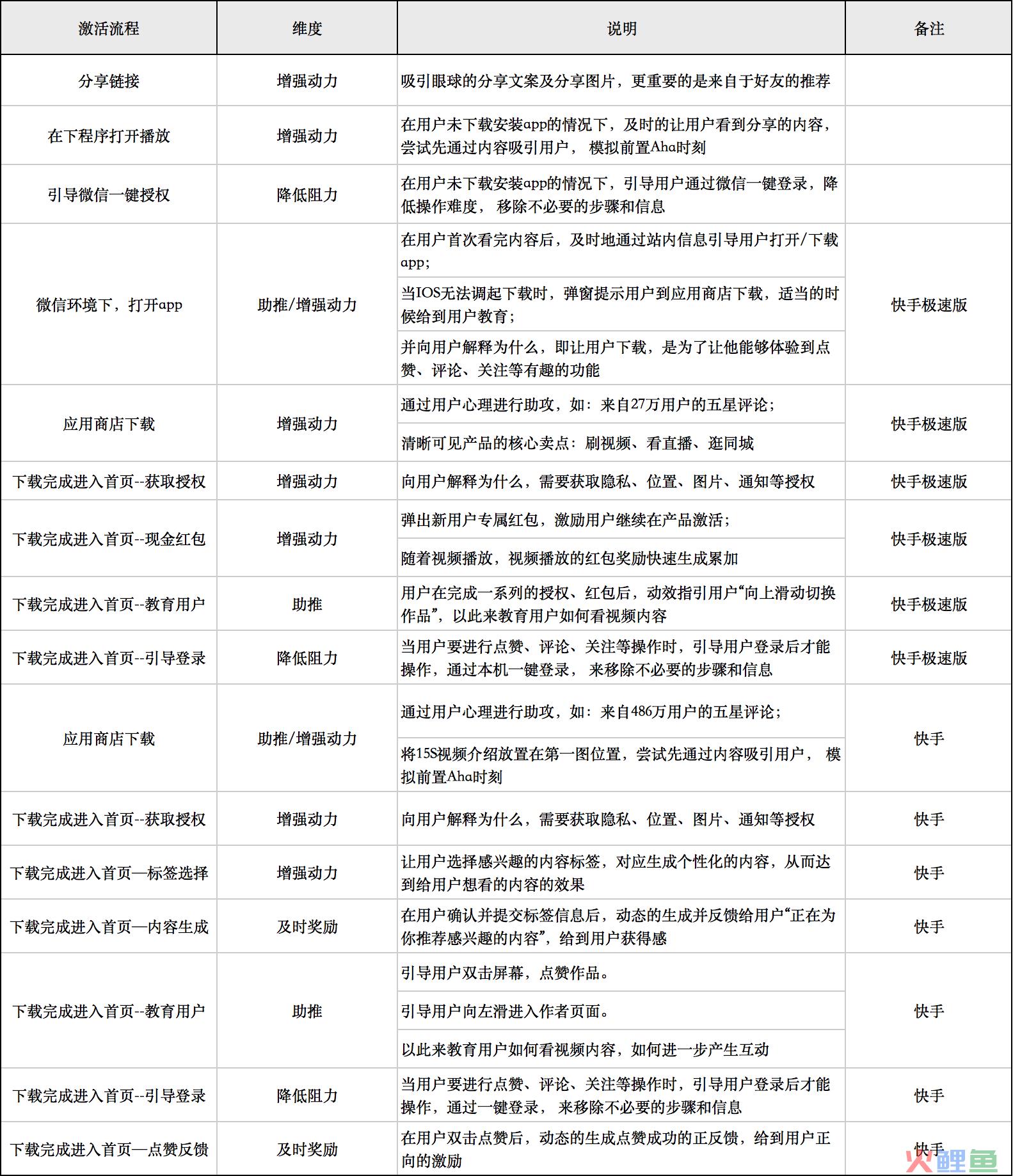 下面通过梳理拆解完整的产品激活流程,来具体看一看,快手是如何利用行为公式有效提升新用户激活的。