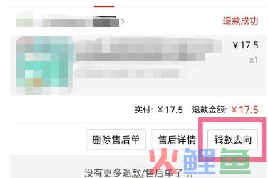 2、点击订单下方的【钱款去向】即可查看退款账户。