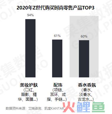 从消费人群来看,2020年Z世代购买时尚零售产品中,美妆护肤位居首位,香水香氛已成为人群消费TOP3产品。