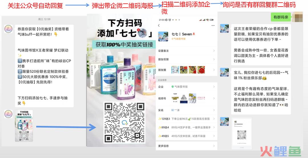 分别用来吸引小白用户、已经了解品牌的用户,和香水衍生品的用户。并且会通过多个途径(企微个人信息页、社群欢迎语等),反复展示这三种福利,吸引用户进行转化。