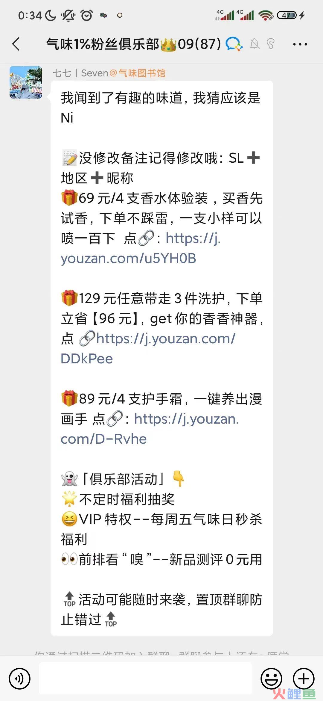 七七拉群:气味1%粉丝俱乐部;