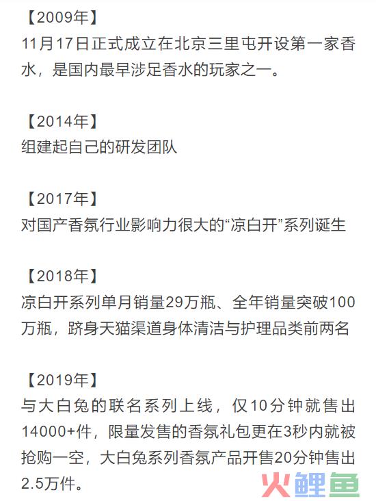 根据《中国香水行业研究白皮书》显示一二线女性初次使用香水的平均年龄在21岁,20岁以下的在五成左右,随着Z世代消费者的进入,香水行业依然处了一个黄金市场,国产香水品牌仍然有很大的发展空间。