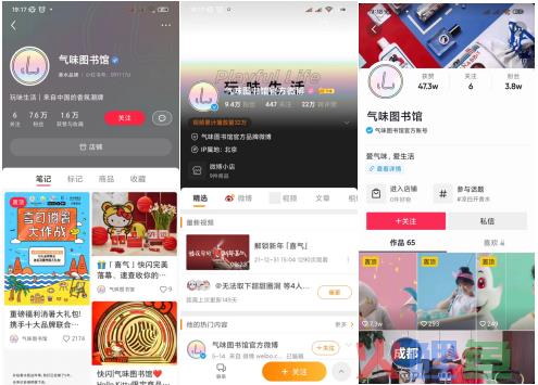 可以看出气味图书馆在公域流量的布局偏重于双微体系,微博是气味图书馆最开始起家的阵地,公众号是私域承接的阵地。