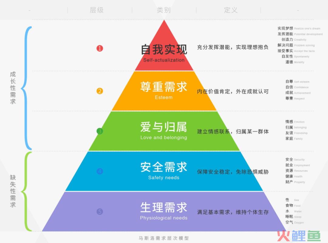 虽然不同人在解读需求理论的时候,对于需求的层次会做出5-7层不同的解读,但是最基本的也就是下面这5种。