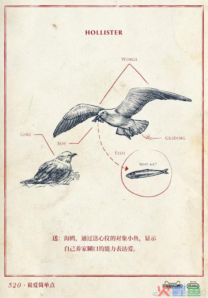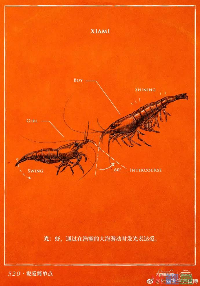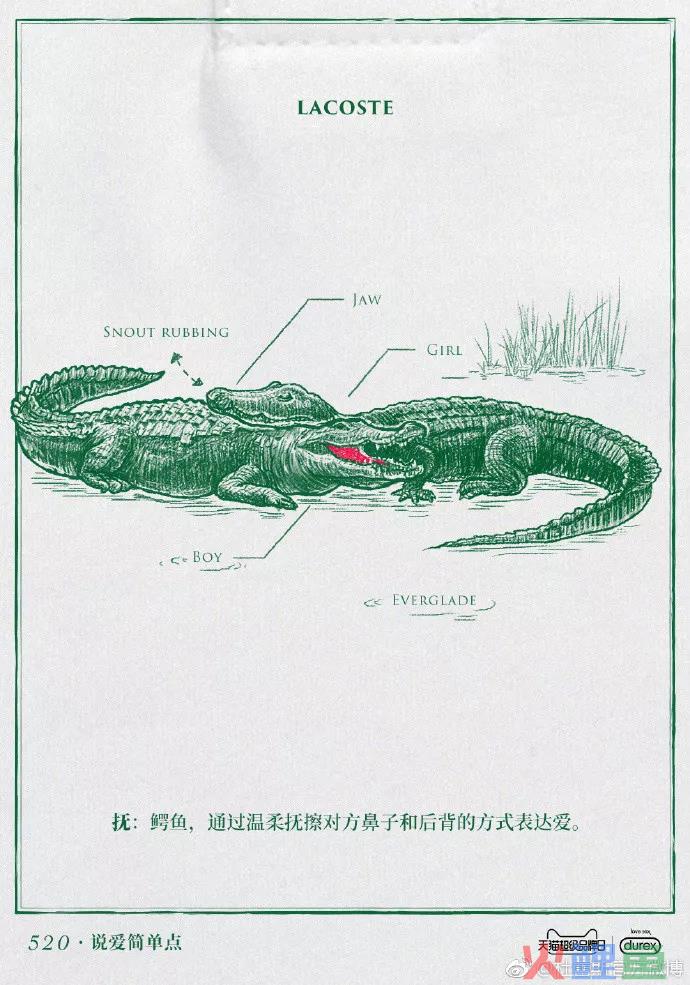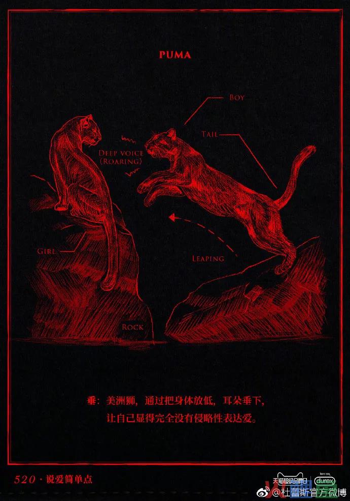 杜蕾斯把每个动物各自表达爱的方式,一一都直观展示出来。很容易发现,它们表达爱的方式都是很直接的。