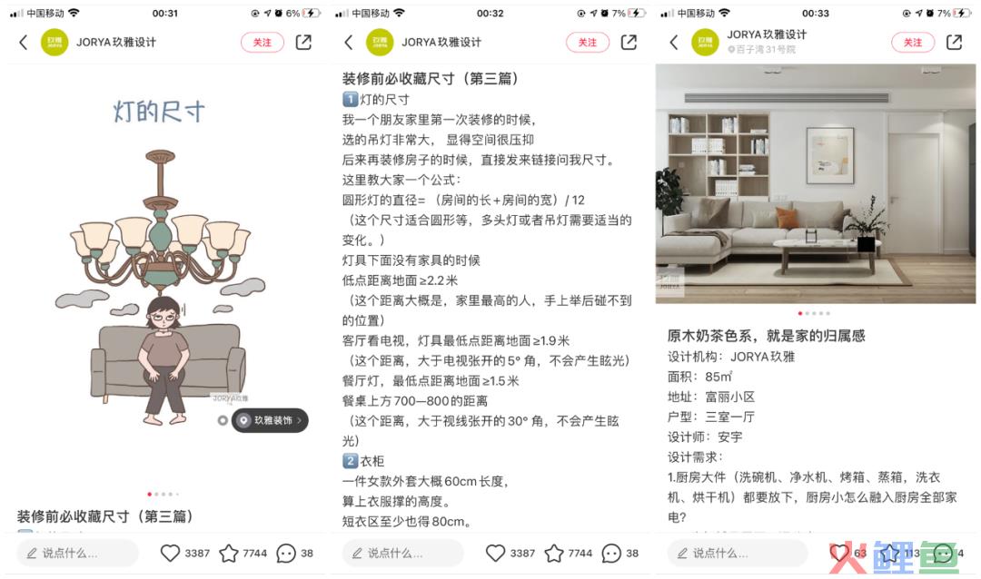 《装修前必收藏尺寸(第三篇)》这类型笔记,让用户一看就是连载类型,出完第三篇,后面肯定还有更多的干货类笔记;好比,这一篇是笔者的第018篇小红书营销干货文章,读者也会觉得,往后还会更多的干货类文章;我们再看上面拼图中的第二张图,内容写的比较详细,而且图片绘画很有感觉,也比较详细。