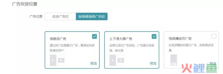 广告投放位置:类似头条,可以优选,也可以自定义某个投放位。