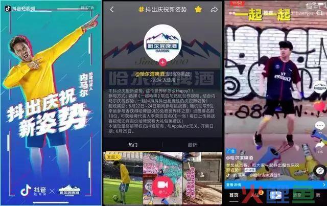 比如,世界杯期间,哈啤在抖音上向用户发出:#抖出庆祝新姿势#主题挑战赛,通过发起挑战赛的互动模式为用户提供参与创作渠道。