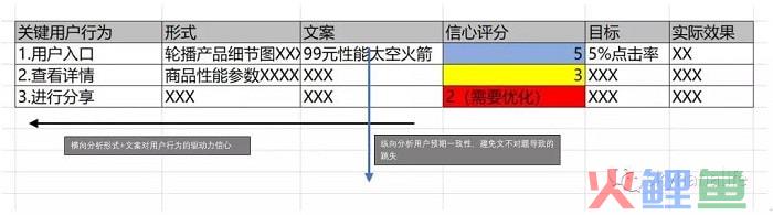 2、提炼关键点的形式和文案,整合到一起,自己或求助他人为每个关键点评分,分析这个关键点你的交互和文案引导用户进行下移不操作的信心有多少