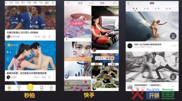 秒拍的内容,是和微博接轨的资讯方向;快手是接地气的用户内容;开眼是优质的经过剪辑的成片。