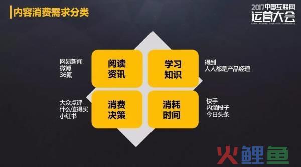 用户在内容消费方面的需求,大概分为阅读资讯、学习知识、消费决策和消耗时间四类。