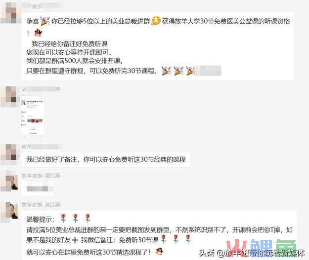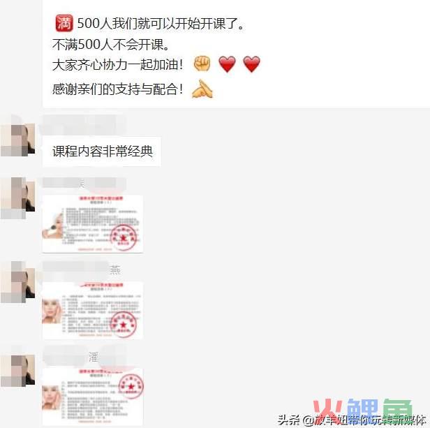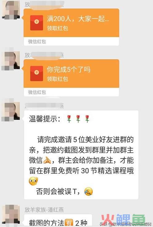 除了要求转发朋友圈外,还有要求的,是必须拉5个人进群才能获得免费学习的资格,满足不了条件的会在课程开始之前清理出群,但是拉入5个人的可以进入VIP群,但是有的粉丝就会觉得,你这个是个噱头,就算我不拉人进群,还不是这样听,这个时候,你需要有一些动作,就是告诉群里的人XXX已经拉满5人,并获得听课的资格,备注已经改好,并截图发群里,话术如下: