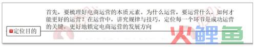 首先,要梳理好电商运营的本质元素。为什么运营,要运营什么,如何才能更好的运营?在运营中,讲究规律与技巧,定位每一个环节是成功运营的关键,更好地锁定电商运营的发展方向。