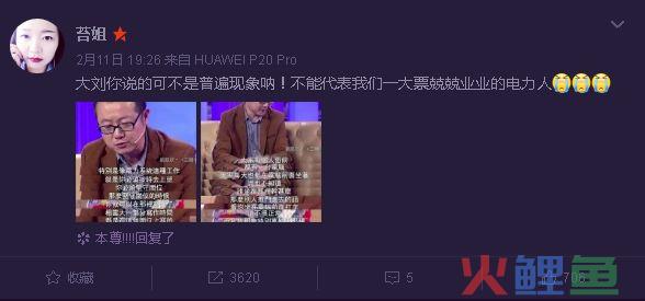 不过,这位@苔姐似乎不太同意刘慈欣的说法,她表示“大刘你说的可不是普遍现象呐!不能代表我们一大票兢兢业业的电力人”。