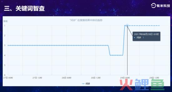 智查主要有两大功能,第一,查询到关键词的覆盖数,包括关键词覆盖的总数,关键词排名前三的覆盖数等。第二,查到每个关键词在搜索结果中的排名趋势。我们的数据追踪都是精确到小时级的,所以,有了这样一个工具,可以效果图表证明。