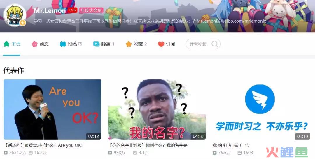 和其它视频网站不同,B站的一大特点是“不以单独内容为赛道”,而是按照用户群体来区分频道,加上B站特有的“玩梗”文化,提供了大量创造“梗”和复制“梗”的空间。每一个在B站看视频的用户,都有可能,也被鼓励成为下一个制造视频的UP主。