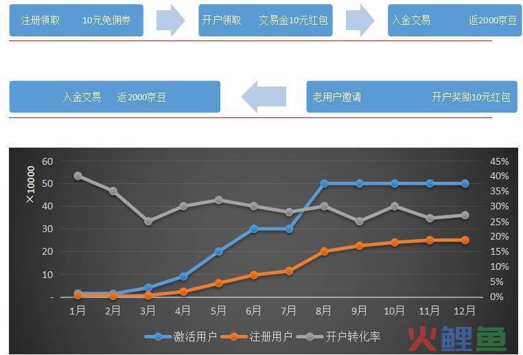 开户送2000-4000京豆,话费,京东E卡等识别度高资源活动,策划开始执行,建立用户奖励机制(积分体系、功能歧视、礼金奖励等)