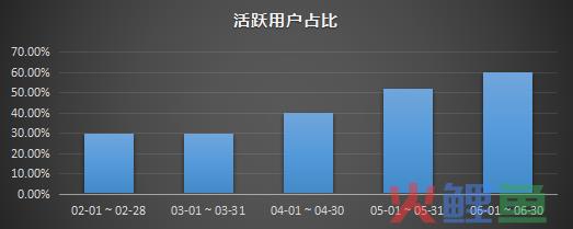 前期未推广阶段新增用户较为平稳,推广初期3月开始设定APP内站内长期活动,新增用户走高,但活跃用户占比平稳,4月份设立用户奖励机制使得活跃用户占比提升。