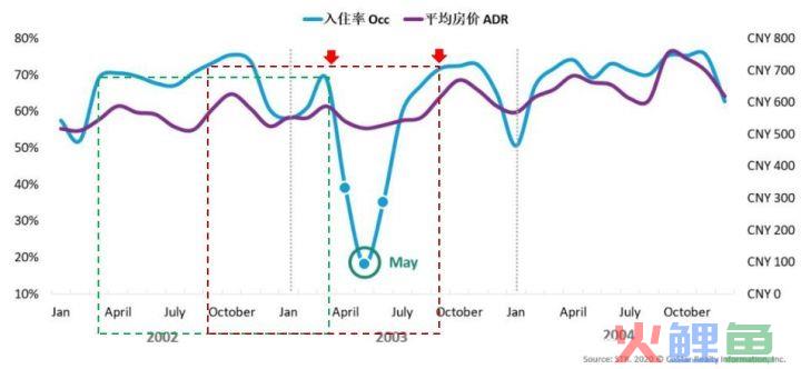 根据STR的数据,2003年3月份中下旬开始,酒店行业的入住率和平均房价开始下滑,五月份下降到最低点,入住率从70%左右的水平下滑到5月最低不足20%,直到同年9月份恢复到与上年同期持平的水平,中间间隔大约半年的时间。疫情对酒店行业的时长要大于疫情本身持续的时长,这一方面是由于酒店需求大多产生自旅游、商务差旅等,所以其需求恢复相对更晚,另一方面也是由于酒店消费者信心恢复需要一定的时间。