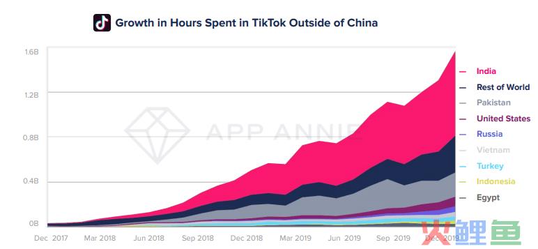 TikTok在海外市场的用户时长增长 图源:APP ANNIE
