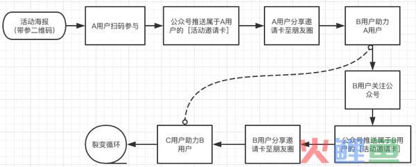 海报裂变就是我们经常在朋友圈看到的那些,痛点文案+解决方案+引导加好友。(裂变活动路径可参考下图)以上就是我们常见的裂变玩法,但是大家不要被以上内容限制。