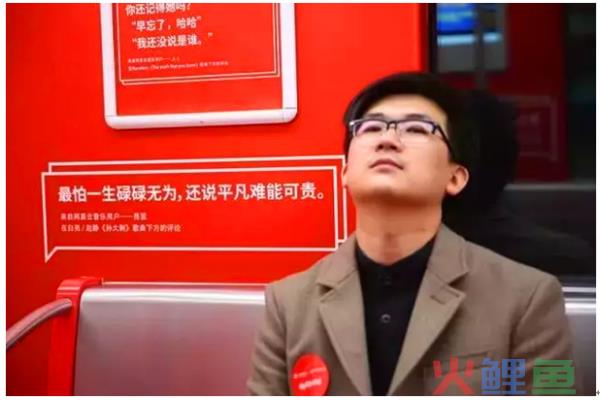 在今年4月份的时候,网易在杭州地铁上投放了一些广告,这波广告成功的刷屏了。网易没有请什么明星大腕儿,也没有烧钱全路线铺流,而是将云音乐评论区里面最受欢迎的一些网友留言挑选出来放到地铁上。那一句句打动人心的留言让人们自发拍照传播,造成刷屏热态。这才是真正的好广告,这就是“内容+”的最好范例。