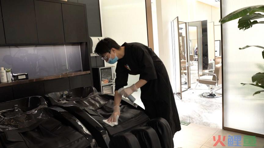 营业恢复后,门店还需要每天按照要求进行消杀,包括进门的时候给顾客测量体温并登记,在顾客面前给座椅以及剪刀、梳子等所有器具进行现场酒精消毒,在顾客离开之后,也需要进行“一客一消杀”。另外,目前开业的门店有不少都采取了预约制等形式控制店内人流,大多数情况下会将店内人数控制在平时的1/2,保证空气流通并避免人员密集。
