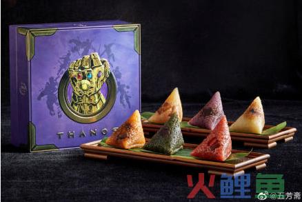 作为吃货的漫威粉也有福了,五芳斋也借此推出了联名版粽子。其中【五芳联盟】金粽礼盒,用四款口味的粽子代表了四种漫威英雄神秘力量;「五芳霸霸」粽子礼盒用则六款口味的粽子还原了六颗无限宝石。