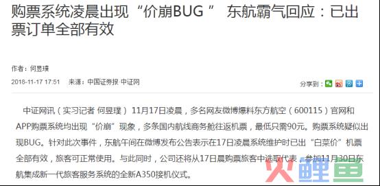这就要不得不提及业内有名的东航BUG事件,被称之为“业界教科书式操作”。