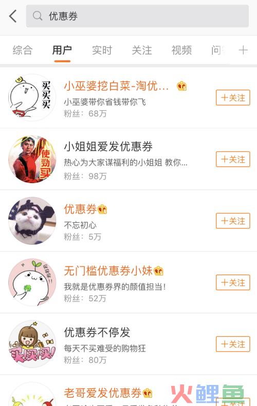 在新浪微博搜索“优惠券”,你会发现有很多微博号专门发淘宝、天猫等商城的优惠券。