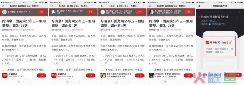 就这样,一条「好消息!#五一放假4天#」出乎意料的放假消息,顿时成了全网热点,媒体追捧营销,大众欣喜买单,浏览访问数据瞬间飙升。