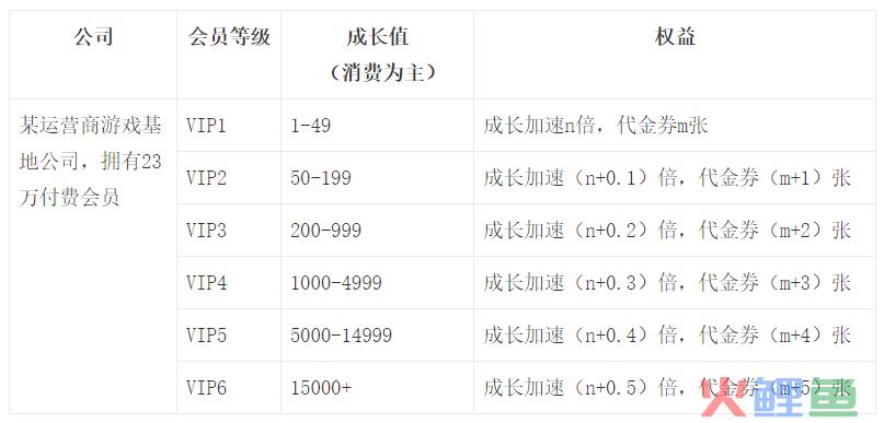 简单讲:用户分几层没有标准的模板,视平台实际运营情况而定,但是不能太复杂。且不建议向用户层告知地过于详细,毕竟在实际实施时,随着业务的发展以及会员体量的变动,适当迭代分层逻辑是必须的。 用户分层的依据(即:平台会员体系中会员等级的成长标尺)≈平台对用户的期许行为。 像很多电商平台,就是以“消费金额”为分层的权重。当然,用户分层的权重可以不止一个,但是肯定是选择最重要的那些。 举例:某运营商下属游戏基地公司,截至到18年,累积拥有23万付费会员,平台以”消费金额“为核心权重,将会员进行6个等级的划分,不同等级会员享受不同的会员权益。