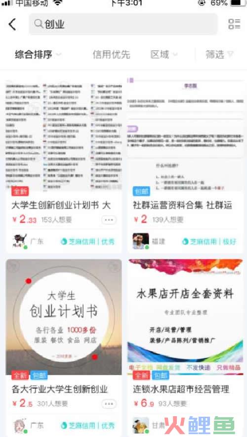 2、直接在消息里面告诉别人,只要你加我的V我就送你什么东西,给一些有价值,却又没价值的东西。比如某某某老师的课程。3、你可以在闲鱼上搜索,赚钱、创业、这些关键字,你会看到一些宝贝,对。模仿他们。