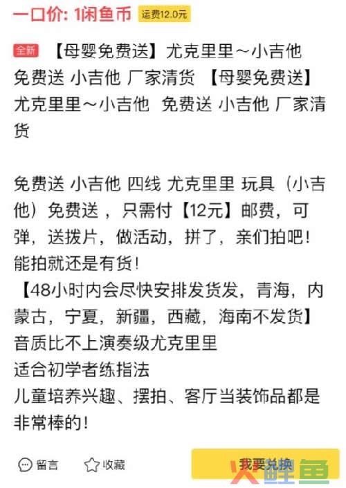 我们计算一下。12块的邮费减去6元成本,再减去3元左右的快递费。诶我们是不是能白赚3块钱....选品的宗旨是“看起来值钱,但实际上不值钱的产品”为什么要选择这样的产品,原因就是利用一个人的潜意识,大家会对很多产品有一个潜意识的定价,如尤克里里,大家一想到肯定是几百上千块,而这个为什么免费送呢?反正也不贵。就付一下邮费。利用一下别人的侥幸心理。如上面的图,内容完全可以模仿别人的,当然需要自己做一下处理,多加1-2个产品关键词。那么我们也可以卖一些手机和电子产品吗?当然是可以的,我们可以再二手东,和华强北这种地方进货,也可以啊。很多人会问,产品的配图应该怎么找,很简单了,阿里巴巴不是有吗,但是大家会发现,图片下载不下来。怎么办???