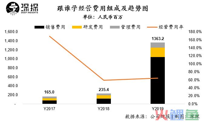 公司在2019年总的经营费用为13.6亿元人民币,尽管在绝对金额上远高于2017年和2018年,但经营费用率仅为64.5%,远低于2017年的169.1%,略高于2018年的59.2%。