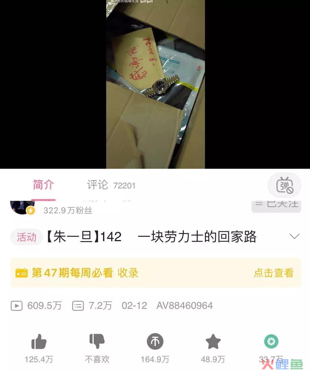 同样这周,短视频红人朱一旦的硬核视频《一块劳力士的回家路》也引起刷屏,虽然“故事内容纯属虚构”,但毫不影响B站上3小时百万播放量的数据表现。