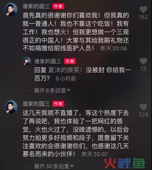 “而不是这次火了,捞一笔,我不想这样,说给我钱我不开心是假的,但更希望有人喜欢我的视频和我这个人。”